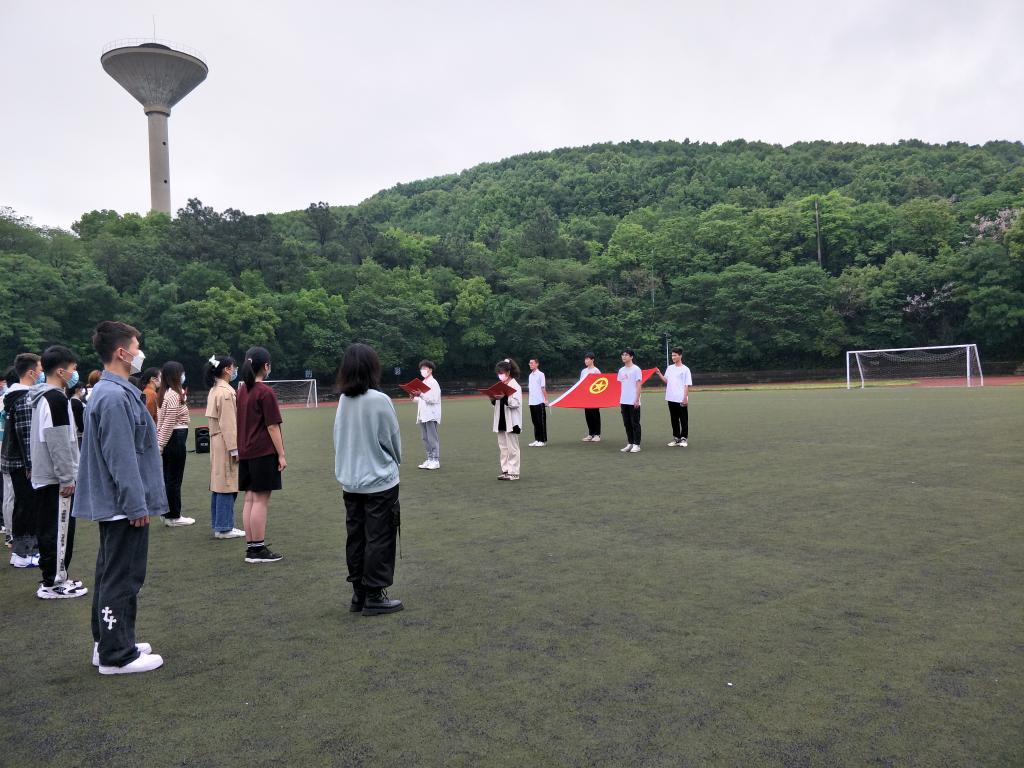 分团委于佳山校区体育场举行了新团员入团仪式,院团委书记、学院部分辅导员老师、100余名老团员代表及7名新发展团员参加仪式,活动以“喜迎二十大,奋进正当时”为主题,以庆祝建团100周年为契机,以党、团史学习教育为抓手,教育引导团员青年继承和发扬五四精神,永远跟党走,奋进新时代。