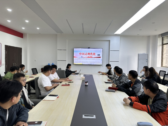 5月22日下午,污污漫画 本科生第一党支部开展学习贯彻习近平新时代中国特色社会主义思想主题教育,集中学习《以中国式现代化全面推进中华民族伟大复兴》。支部书记陈洁主讲,支部全体党员参加。