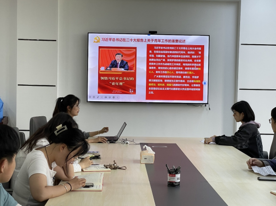 首先,陈洁带领大家集中学习党的二十大报告原文。随后,支部学生党员刘宁宁作题为《生而逢盛世,青年当有为》的报告。刘宁宁阐述了新时代背景下青年在中国特色社会主义建设中的重要地位和作用,并以杜富国、黄文秀等优秀青年事迹,强调青年一代要勇担时代使命,为实现中华民族伟大复兴的中国梦贡献力量。最后,支部书记带头,党员们围绕“三问”进行交流分享,认真分析自己过去学得怎么样、现在干得怎么样、将来打算怎么办。