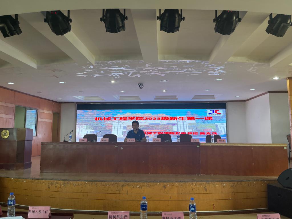 在佳山校区大学生活动中心面向全体2023级新生开展“大学第一课”,学院党委书记吴文兵,学院院长刘庆运,学院党委副书记、副院长李克明,团委书记费白露,各系主任、2023级辅导员以及全体2023级新生参加了此次大会,大会由新生辅导员张敏主持。