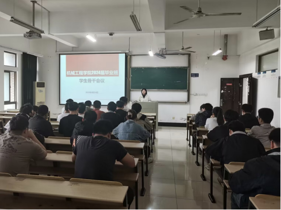 在机械楼405教室召开2024届毕业班学生干部工作会议,毕业班辅导员及学生骨干参加此次会议。
