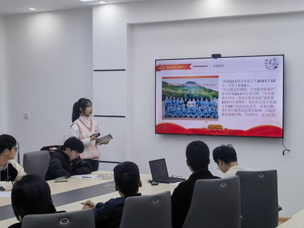在机械楼302会议室举行“五四红旗团支部”评比答辩会。学院团委负责人、辅导员老师、候选班级团支书和学生代表参加答辩会。
