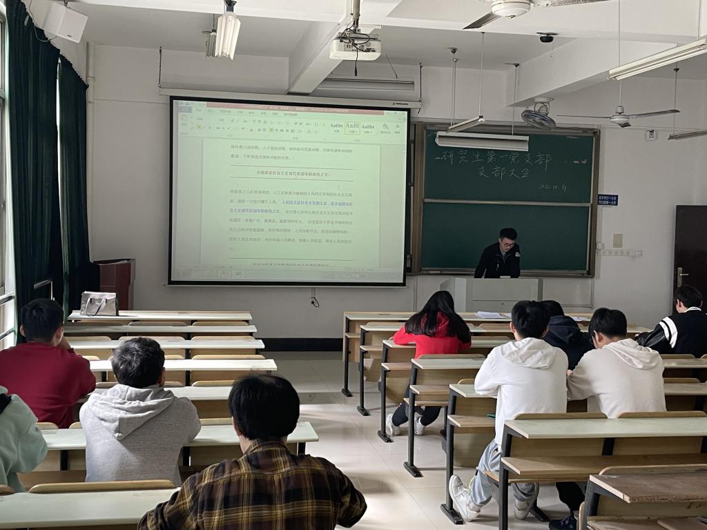 研究生第一党支部在机械楼413组织展开新党章学习,本次学习活动由支部书记张敏主持,由支委柳传捷领学。