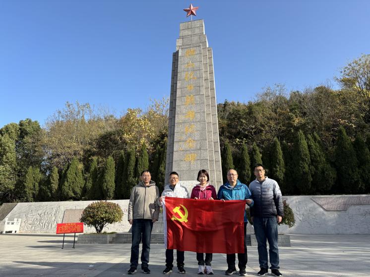 在庄严肃穆的横山抗日英雄纪念碑前,全体党员整齐列队,深切缅怀为民族解放事业英勇献身的革命先烈。面对党旗,全体党员庄严宣誓,重温入党誓词。铮铮誓言回荡在纪念碑前,全体党员永葆初心、勇担使命的信念更加坚定。随后,大家依次瞻仰烈士纪念碑,认真聆听革命历史讲解,深刻感悟革命先烈不畏艰难、勇于牺牲的崇高精神。全体党员从本次活动汲取了精神力量,增强了党性修养,牢记为党育人、为国育才的初心使命,把革命精神转化为推动教育教学、科研创新的强大动力。