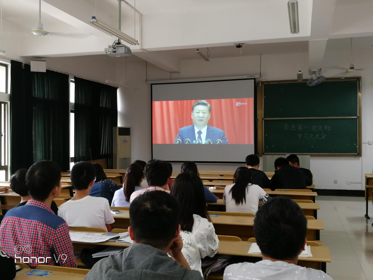 本科生第一党支部在机械楼405教室召开党员大会,专题学习宣传贯彻党的十九大精神和全国两会精神,充分学习习近平新时代中国特色社会主义思想,支部全体党员参加会议,会议由支部书记章军主持。