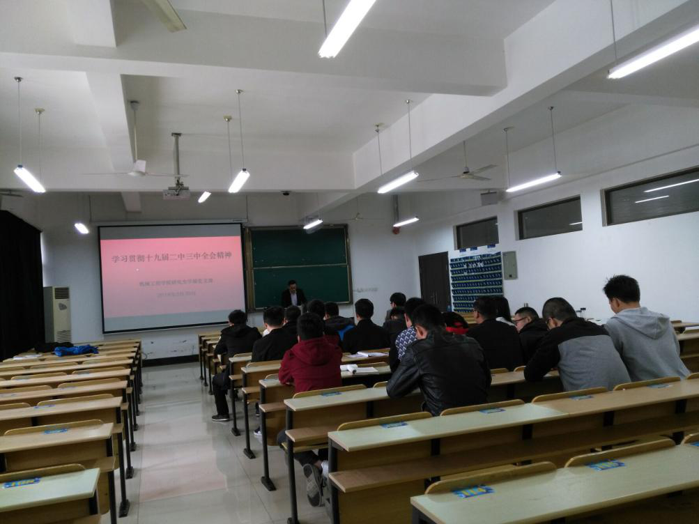 研究生学硕党支部召开党支部大会,传达学习贯彻党的十九届二中、三中全会精神,会议由支部书记杨龙主持。