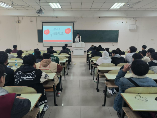 大学生宣讲团成员刘宁宁、孙凤月、张子强、崔丽娜等同学主讲,全体机械学子参加。