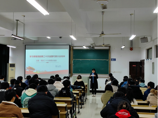 宣讲团成员刘宁宁、孙凤月、张子强、崔丽娜分别以“谱写新时代中国特色社会主义更加绚丽的华章”“阐明习近平新时代中国特色社会主义思想的世界观和方法论”“实施科教兴国战略,强化现代化建设人才支撑”“新时代,新青年,新作为”为题,围绕党的二十大报告的理论创新展开宣讲。
