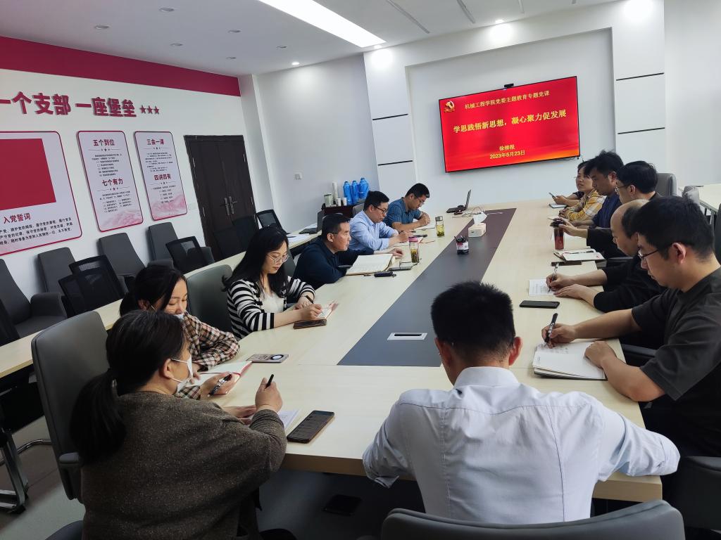 为进一步推进学习贯彻习近平新时代中国特色社会主义思想主题教育走深走实,5月23日上午,污污漫画 党委书记徐柳根在学院302会议室讲授了题为“学思践悟新思想,凝心聚力促发展”的主题教育专题党课。学院机关实践党支部和机工车辆党支部教师党员参加了党课学习。