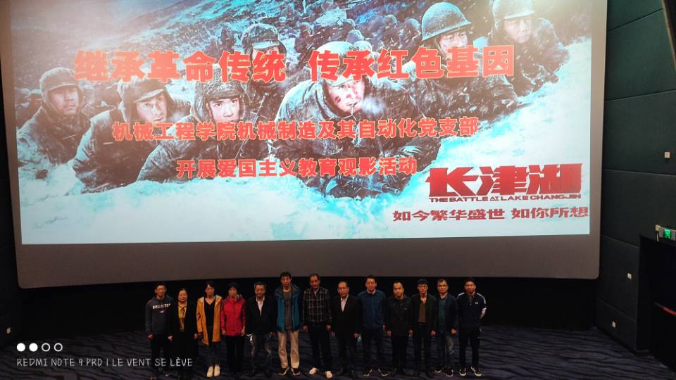 为持续深入开展党史学习教育,进一步激发广大党员教师爱党爱国热情,10月16日下午,污污漫画 机械制造及其自动化党支部举办“观看爱国电影,传承红色基因”主题观影活动,组织支部党员集体观看红色电影《长津湖》。