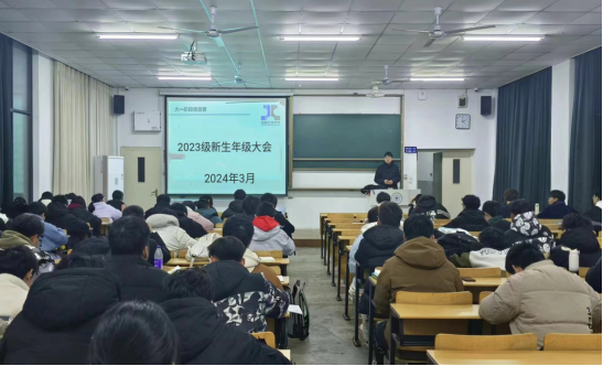 在佳山校区第一教学楼分专业分批次开展新学期学生安全教育大会,会议由学院2023级辅导员张敏、彭勇刚主讲,全体2023级学生参加。