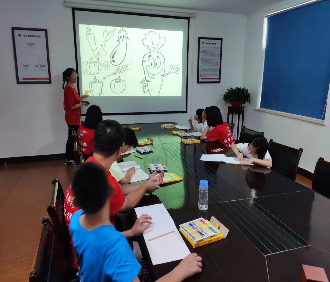 团队于当日上午到达刘集镇留守儿童活动中心,在活动中心负责任人的帮助下,了解了当地关于留守儿童假期关怀的情况。之后,队员们与留守儿童进行了欢快交流,并利用此次机会向没有父母照顾的孩子们介绍了一些急救知识,希望他们能够度过一个安全、快乐的假期,同时,队员们向留守儿童介绍了一些课外知识,希望每个孩子都能够在有限的条件下培养自己的兴趣爱好。