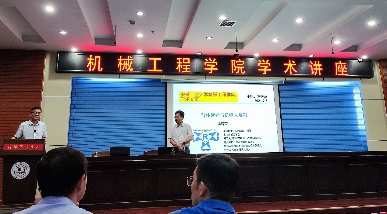 2021年7月6日上午,应学院和重点实验室的邀请,同济大学机械与能源工程学院副院长、博士生导师汤奇荣教授为我院师生做了题为《群体智能与机器人集群》的学术报告,报告由刘庆运院长主持,机械学院研究生及教师参加了此次报告会。