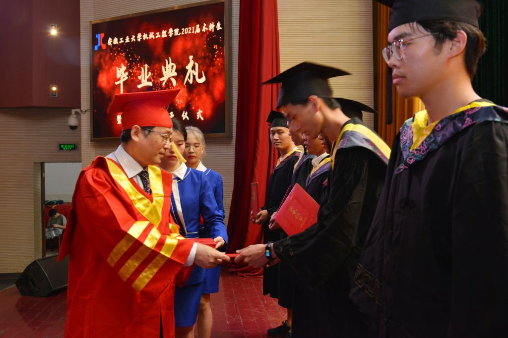 魏先文作了热情洋溢的讲话。他肯定了学院2021届毕业生取得的优异成绩,代表学校向圆满完成学业的毕业生表示祝贺并致以美好的祝愿。他指出,同学们的毕业季恰逢中国共产党建党100周年,恰逢“两个一百年”奋斗目标的历史交汇期,大家既拥有广阔的发展空间,也承载着伟大的时代使命。他向毕业生们提出了四点希望:一是做有理想、有信念的青年追梦人,树立对马克思主义的信仰、对中国特色社会主义的信念、对中华民族伟大复兴的中国梦的信心。二是做有担当、有作为的青年实干家,在学习生活中增长知识、锤炼品格,在工作岗位上增长才干、练就本领。三是做有追求、有毅力的青年创新者,坚持和弘扬“精工博学,厚德敏行”的校训精神,勇于探索,敢于创新,自强不息,追求卓越。四是做有责任、有爱心的青年奉献者,把小我融入到祖国的大我、人民的大我之中,让青春在党和人民最需要的地方绽放绚丽之花。