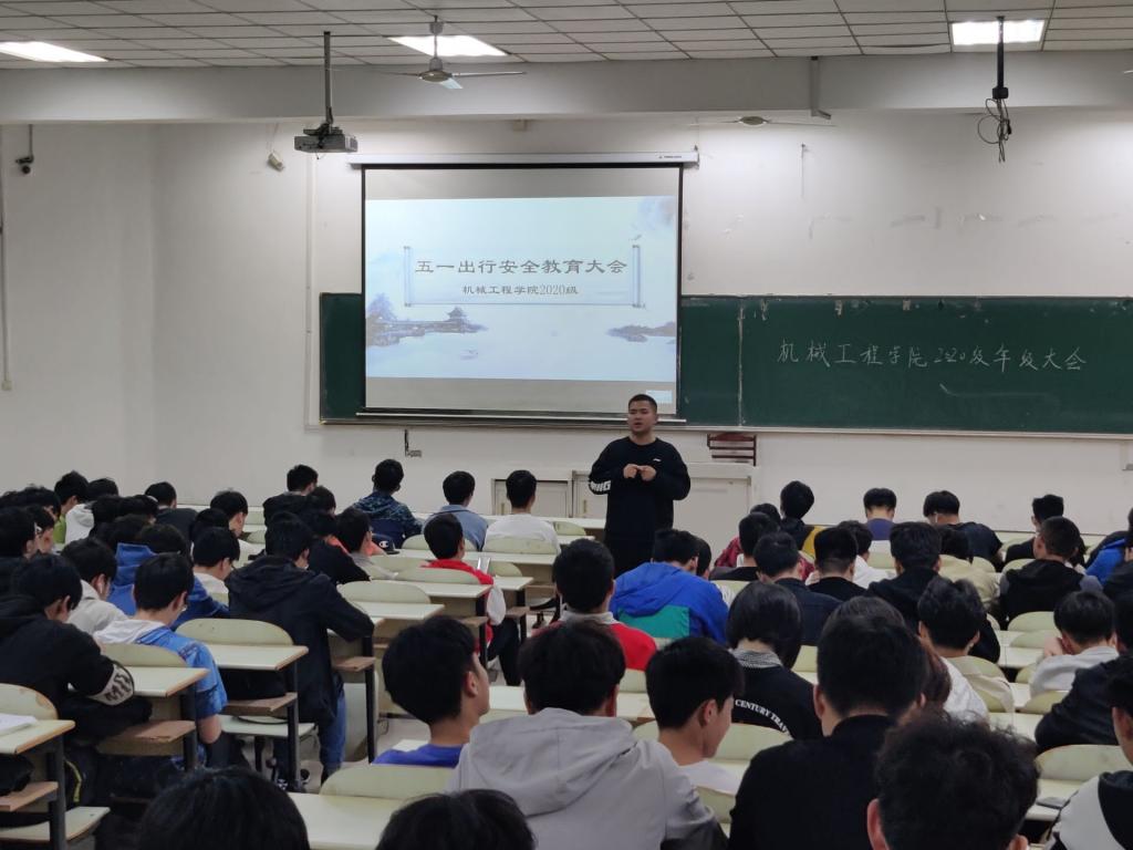 4月28日,污污漫画 于佳山校区教三南103教室对2020级学生分批召开了“五一出行安全教育大会”,会议由2020级辅导员汪辉主持。