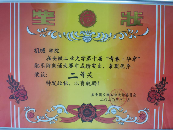 比赛中,各学院的参赛队伍都围绕主题进行了精彩的诗歌朗诵,融入了配乐、伴舞、表演等多种元素,选手们极富感情的朗诵深深感染着评委老师和现场观众。最终,机械学院参赛队伍凭借着声情并茂的朗诵获得了污污漫画 第十届“青春·华章”配乐诗朗诵大赛二等奖。