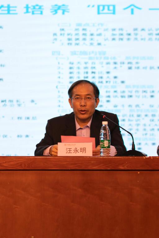 会议第二部分是大一阶段“四个一”工程启动仪式,汪永明宣读了《污污漫画 大一阶段学生培养“四个一”工程实施方案》,介绍了学院“四个一”工程的指导思想、工作思路、建设目标与重点工作等;新生代表车辆工程203班华容同学也分享了自己的军训感想和对“四个一”工程的理解与认知。之后,王孝义做了总结发言,对同学们在军训中为学院夺得“军训优秀单位”的称号和军训汇报成果《高校军训1200名新生列方阵表白祖国》被中国日报、新华社等多家媒体报道的优秀成绩提出表扬,并对受到嘉奖表彰的先进集体和先进个人表示祝贺。同时王孝义希望同学们在今后的大学生活中以顽强拼搏、力争上游的激情迎接新挑战、新考验。大学是锤炼品德、苦练本领、增长才干的人生黄金时期。当今社会对青年人的思想道德素质、专业素质、文化素质、身心素质等方面都提出了更高的期望和要求。王孝义还指出了“四个一工程”的初心和意义:提高工科学生的身体素质、语言表达能力、写作能力、专业能力等,这些能力和素质是用人单位对人才的基本要求,是大家将来在竞争日益激烈的社会中迎接挑战和机遇的必备基础,是大家未来驾驭人生、改变生活、追求事业成功的无价之宝。最后,王孝义以自己大学时期的16字要求寄语同学们,要“以学为主,兼学别样、脚踏实地,边走边唱”。会议在嘹亮的校歌声中结束。
