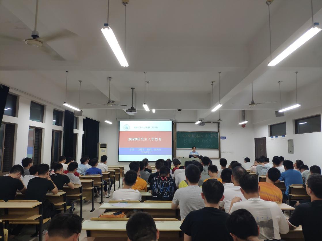 副院长饶思贤主持,研究生教学秘书高培青,2020级研究生全体新生参加了大会。