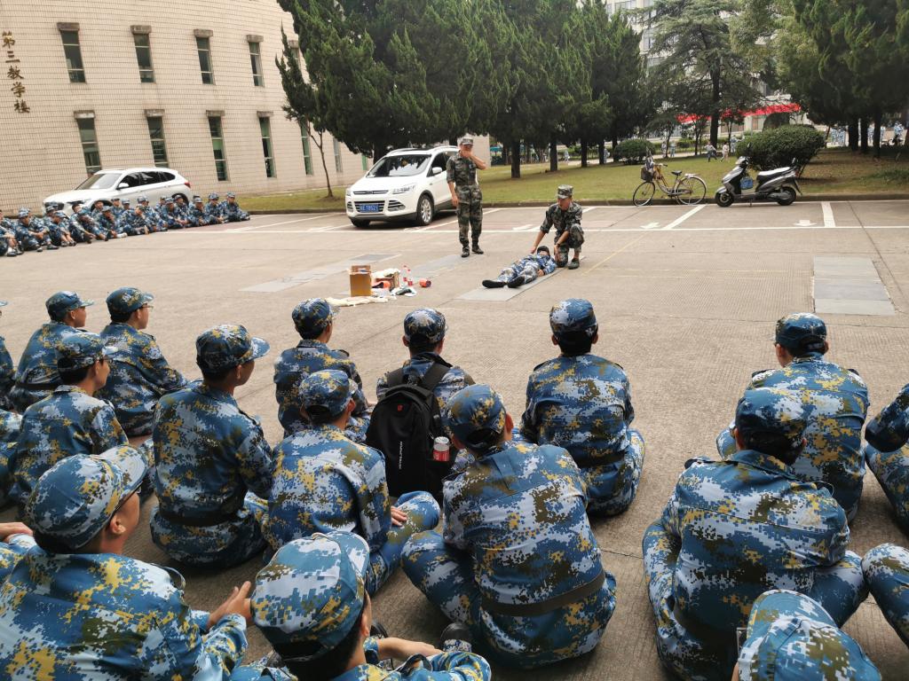 9月23日下午,污污漫画 2020级新生佳山校区第三教学楼开展了卫生健康教育和战场医疗救护训练,此次教学活动由校医院工作人员和军训教官担任主讲。
