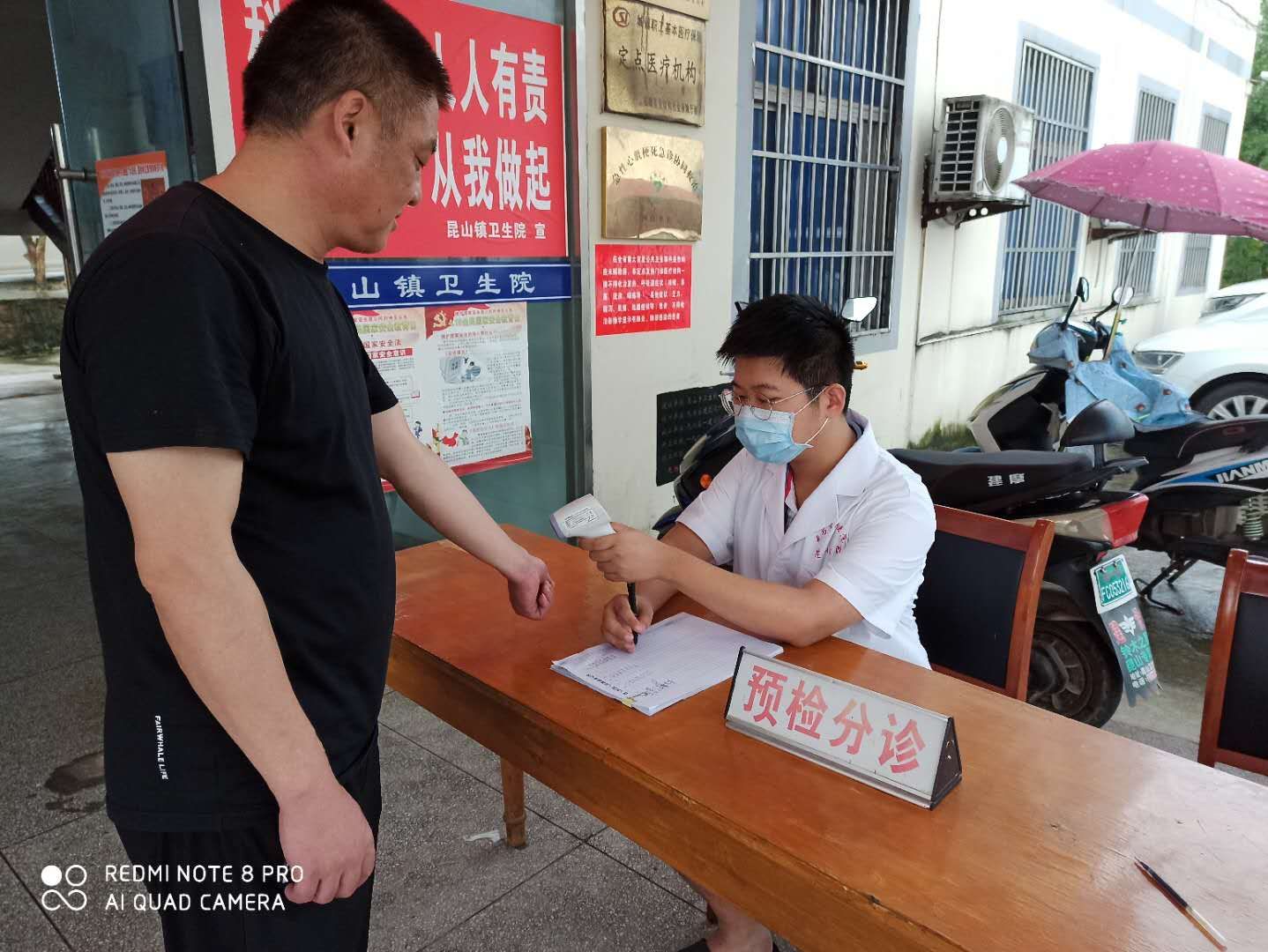 新冠疫情防控工作已进入常态化,在社会全面复工复产复学的背后,是一群疫情防控志愿者默默的奉献。机械设计制造及其自动化专业2019级周乐天、陈文强等同学无惧高温,坚持每日执勤,检查进入小区车辆的健康码,测量进入卫生院人员体温。虽然天气炎热,但他们不怕苦不怕累,任劳任怨,每一日汗水都湿透白大褂、红马甲。志愿者们认真负责的工作态度,得到了社区领导和居民的认可。