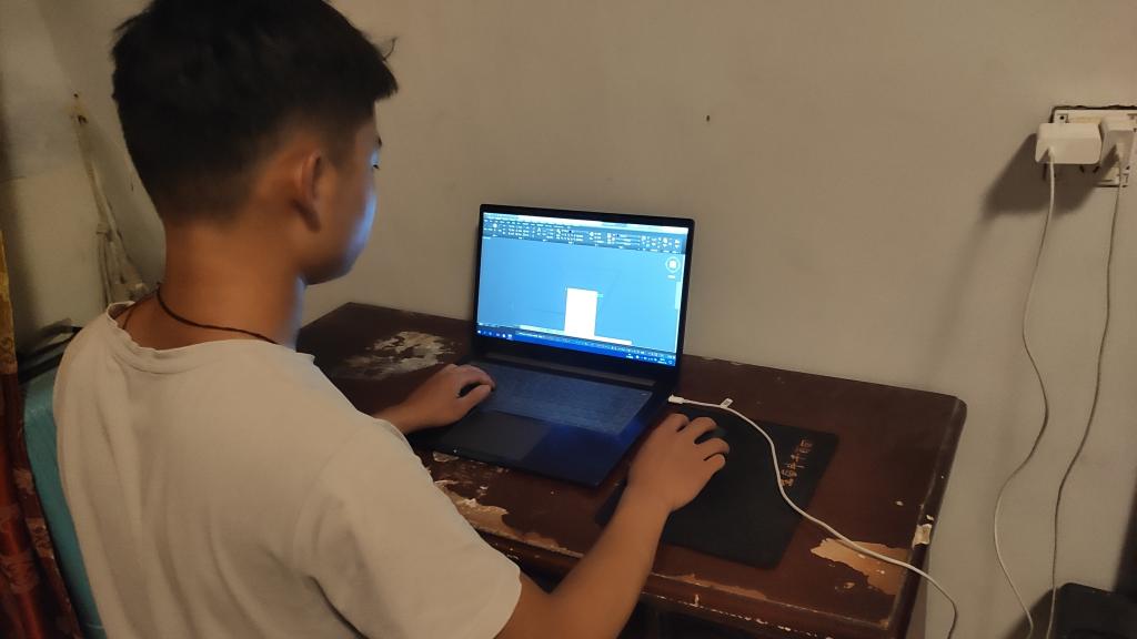 还有些同学选择了居家实习,机械设计制造及其自动化专业194班的王浩雨、王修洋便在家做起了CAD描图员的工作,足不出户也能锻炼自己的专业技能。