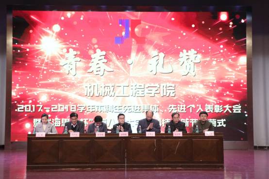 “青春•礼赞”2017-2018学年本科生先进集体、先进个人表彰会议暨“海思达杯”第八届大学生科技创新节闭幕式在秀山校区大学生活动中心成功举办。学院党政领导徐柳根、王孝义、李克明、汪永明、刘庆运,安徽海思达机器人有限公司总经理张良安,学院各党支部书记、系(室)主任,全体辅导员,获奖学生代表以及各年级学生代表500余人参加了会议。