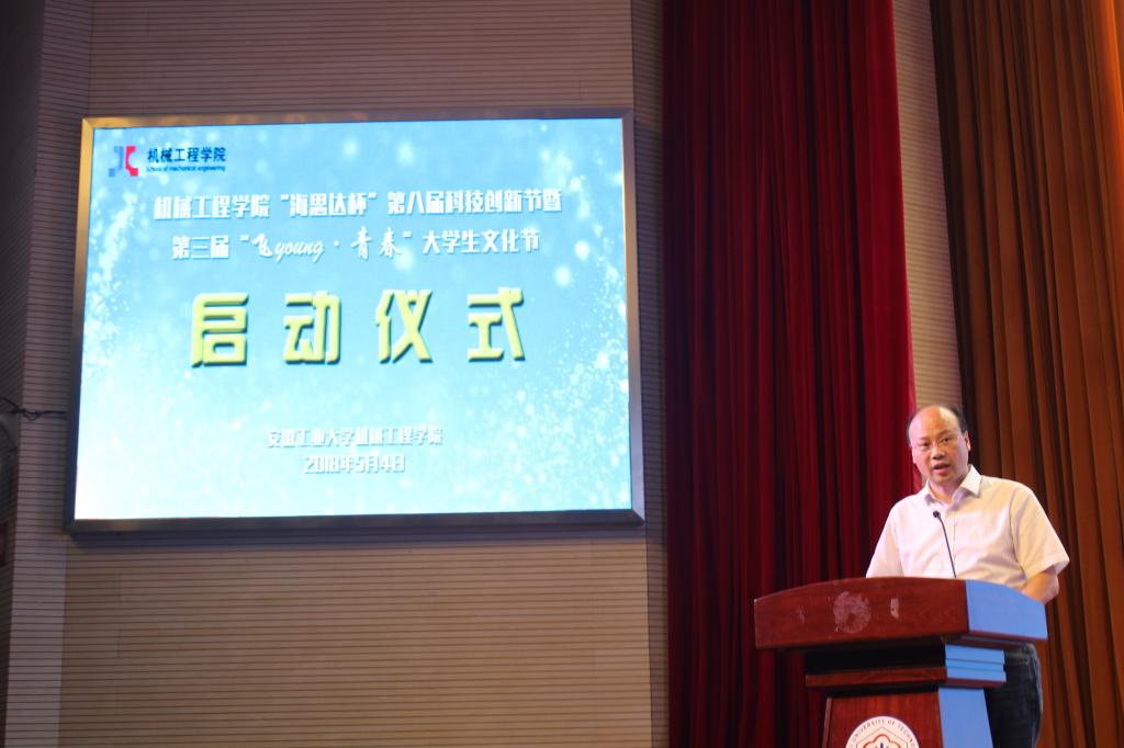 “海思达杯”第八届大学生科技创新节暨第三届“飞young·青春“大学生文化节启动仪式在秀山校区新大学生活动中心正式举办。本次活动由院党委副书记、副院长李克明负责主持,出席活动的嘉宾有院党委书记徐柳根,院长王孝义,海思达机器人有限公司总经理李友顺,副院长汪永明、副院长刘庆运。