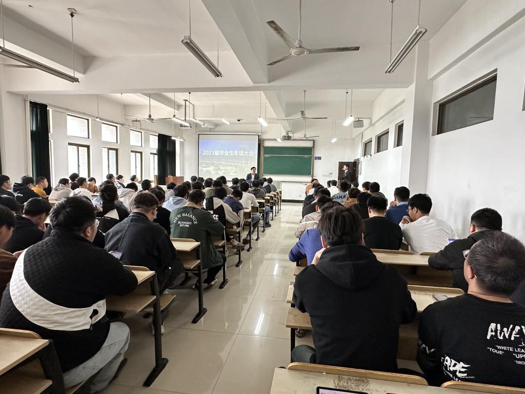 在机械楼403、407、413、415四个教室分批次召开2023届毕业生“摆正心态、理性选择”心理指导暨就业选择指导讲座,讲座由学院党委副书记、纪委书记、副院长李克明主讲,由毕业班辅导员主持,全体2023届毕业生参加了会议。