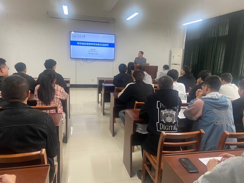 现场师生对报告内容表示了浓厚的兴趣,并与刘永斌教授就道旁声学信号的采集方式、强背景噪声下目标信号的去噪方法以及多普勒畸变矫正技术在轴承道旁声学信号诊断中的应用等相关问题进行了深入探讨。针对各位师生提出的问题,刘永斌教授进行了详细解答,并给出了建设性意见。