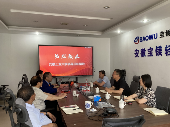 6月16日,机械工程学院党委副书记、纪委书记、副院长李克明一行赴安徽宝镁轻合金有限公司开展产学研合作调研暨访企拓岗促就业专项行动。青阳县的县委常委、县委副书记、人大常委会主任杨晓兵安徽宝镁总经理守君人力资源部部长童林红等参加座谈会