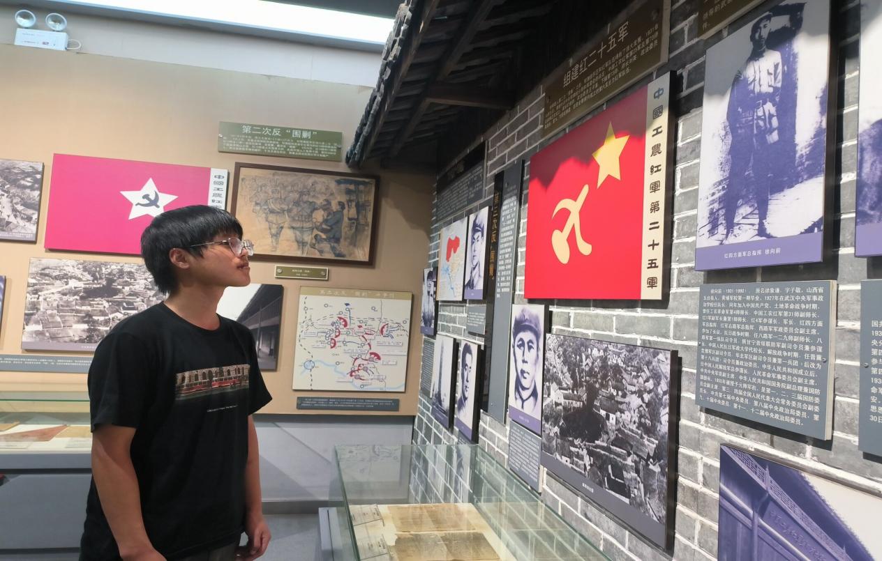 图为实践队员通过图片文字学习红二十五军历史
