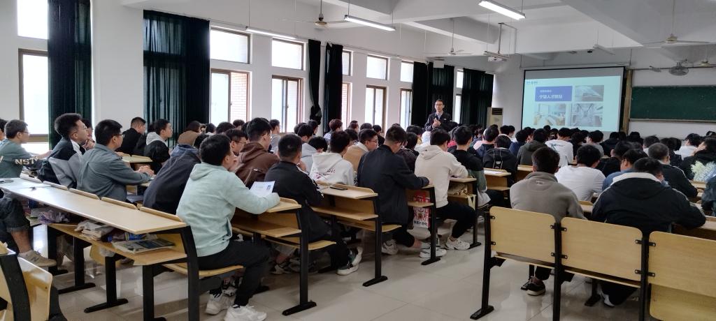在机械楼405教室开展海天集团专场宣讲招聘会,机械学院近200名2023届毕业生参加了宣讲会。