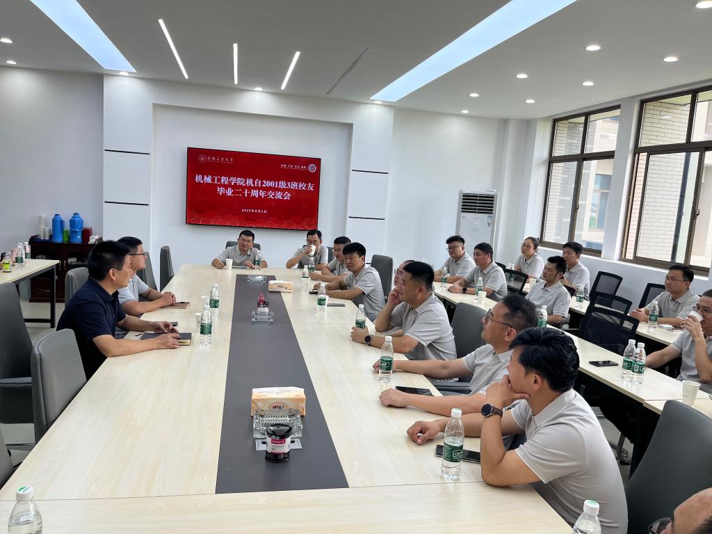 在机械楼302会议室举办了温馨的校友座谈会。学院党委书记吴文兵、机自系主任、辅导员、学生代表与全体校友欢聚一堂。座谈会上,师生们共同观看了展现母校蓬勃发展的宣传片和校友们精心制作的毕业20周年纪念视频。现场还特别连线了因故未能到场的校友,屏幕两端笑语欢颜,情意融融。大家一同深情回顾了学校和学院筚路蓝缕、快速发展的光辉历程。