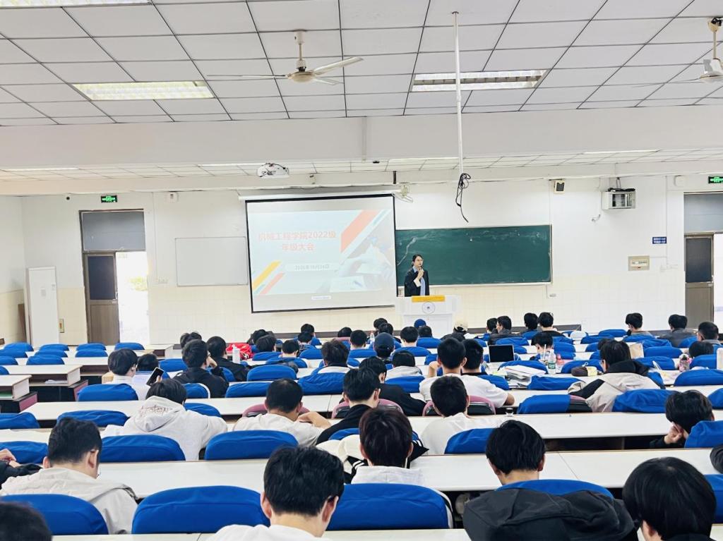 2022级于东教一阶102教室召开年级大会。会议聚焦2026届毕业生发展需求,围绕考研考公冲刺、就业工作推进、征兵入伍、安全防护教育与学业核查以及毕业生求职补贴等核心议题展开。会议由22级辅导员孙紫玮老师主持,22级各专业同学参加会议。