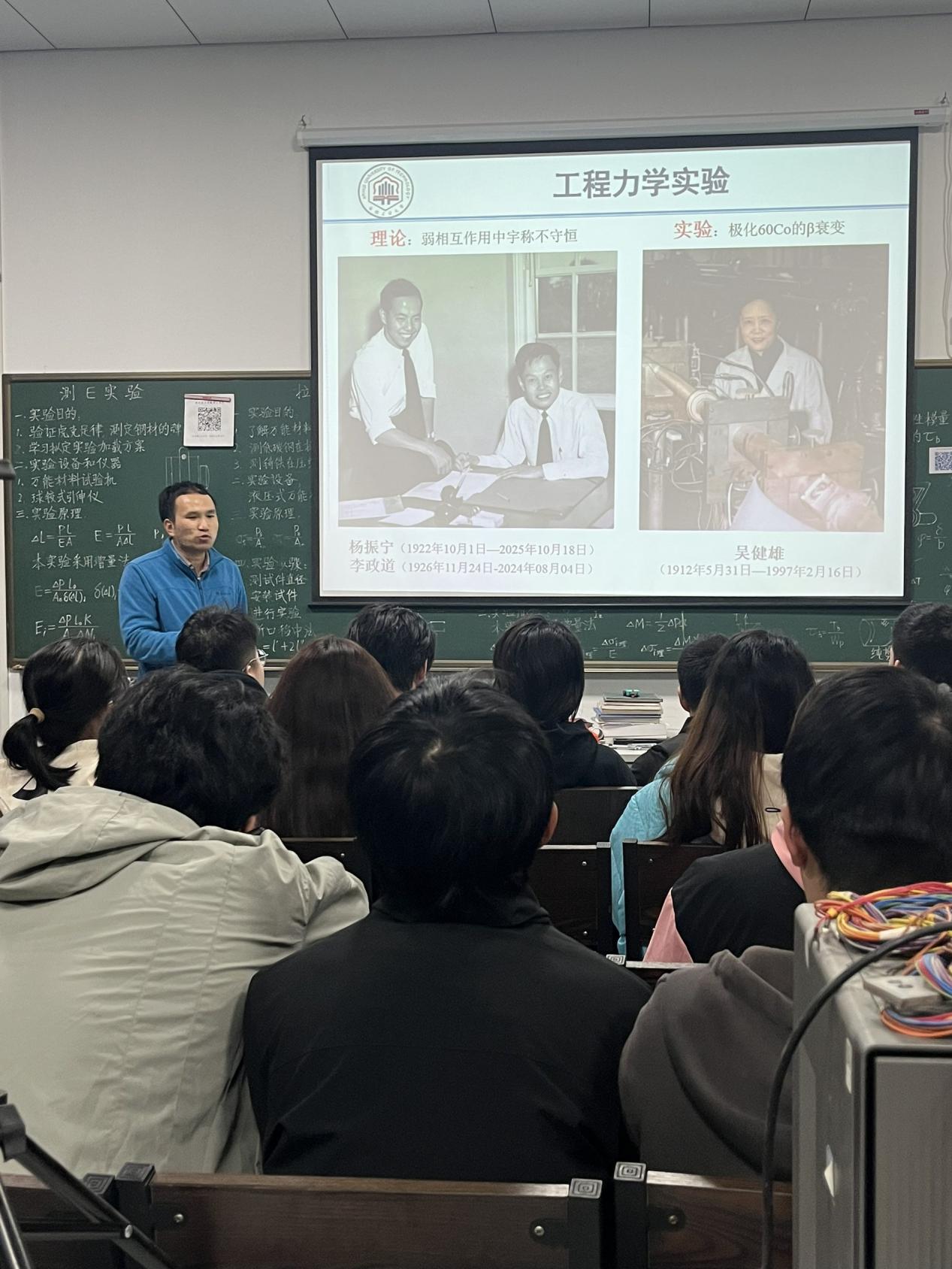 黄志来老师在讲授拉伸、压缩和纯弯曲实验时,以著名科学家杨振宁为切入点,通过实验的置信度、可度量、可操作性、可观测性、误差等讨论实验的本质,引入丰富的生活实例进行讲解,如:考试其实也是测试,一定存在误差,所以用平时成绩补偿误差,以提高置信度,平时成绩是“科学的结果”。从“秦始皇统一度量衡”的意义,引出力学测试的标准,从污污漫画