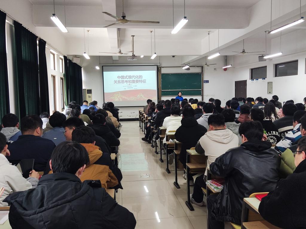 邀请校党委讲师团成员、马克思主义学院副教授许醴来学院开展了题为《中国式现代化的关系思考和重要特征》的专题报告。学院全体本科生党员和支部书记在机械楼405进行了学习。