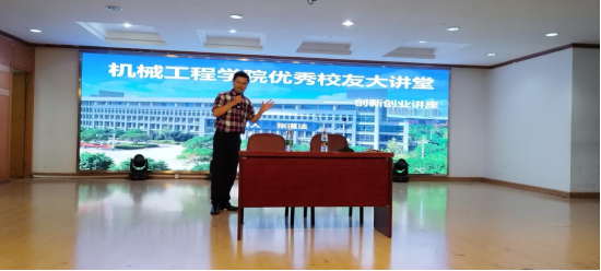 张道法以幽默风趣的语言向同学们讲述了自己的就业、创业以及人生经历,向同学们介绍了自己在校学习期间奠定基础、在校外积累经验从而一步步成就自我的历程。他向新生们提出建议,要坚持终身学习,开拓视野,做好学业规划和职业规划,着重提升个人的知识技能与综合素质,在困难中成长,在磨砺中提升,书写机械学子爱党报国、爱校荣校的新篇章。他鼓励同学们要擦亮奋斗的青春底色,充分利用好大学四年光阴,树立明确目标,增强学习动力,刻苦钻研学习,扎实打好基础,练就过硬本领,努力成为实现中华民族伟大复兴的先锋力量。讲座中他也向大家提出了能分享、会感恩、懂“利他”、肯吃苦等做人做事的道理。张道法在求学过程中的奋进,在就业过程中的坚持,在创业过程中的拼搏,感染了每一位参加讲座的同学,大家不时以阵阵掌声予以回应。