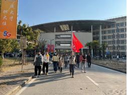 党委书记吴文兵的带领下,本科生第三党支部党员、学生党支部书记共同开展了“守初心•跟党走”校园健步行活动。师生党员精神抖擞、昂首阔步,沿着既定的路线,以饱满的激情、昂扬的斗志投入到健步行活动中。