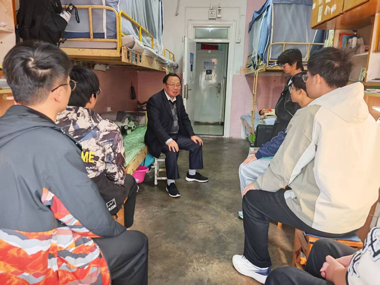 为深入了解2025级新生入学适应情况,引导学生尽快转变角色,规划好大学生活,10月27日下午,学院开展关工委老师走访新生宿舍活动。校关工委常务副主任刘明、学院党委书记吴文兵、学院退休教师吴玉国、余晓流、徐向荣以及新生辅导员参加走访活动。